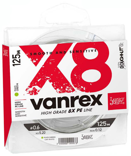 —Шнур /Lucky John/ VANREX x8 Fluo Green 125м, 0.12мм-5,20кг, цвет ярко-зеленый